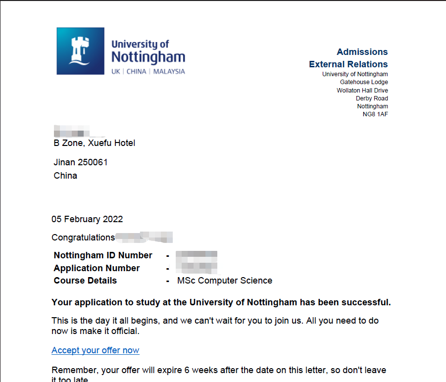 录取专业:Computer Science or Computer Science (Artificial Intelligence) MSc