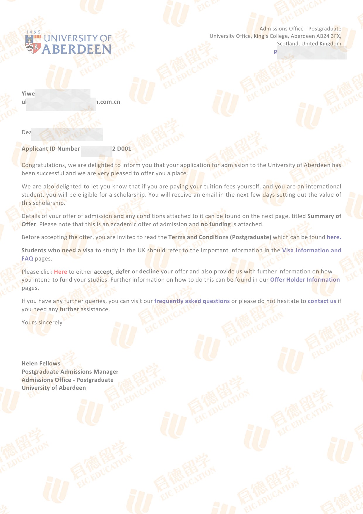 录取院校:阿伯丁大学