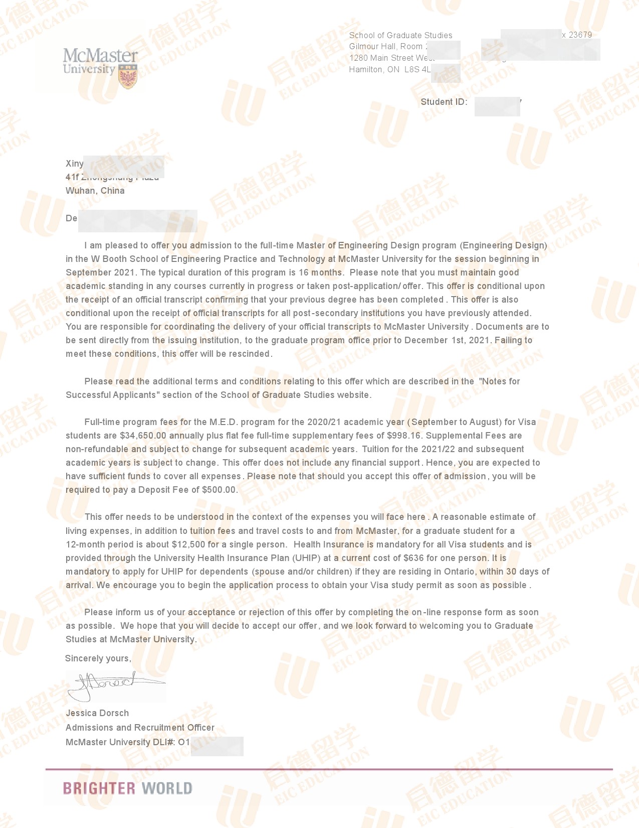 录取院校:麦克马斯特大学