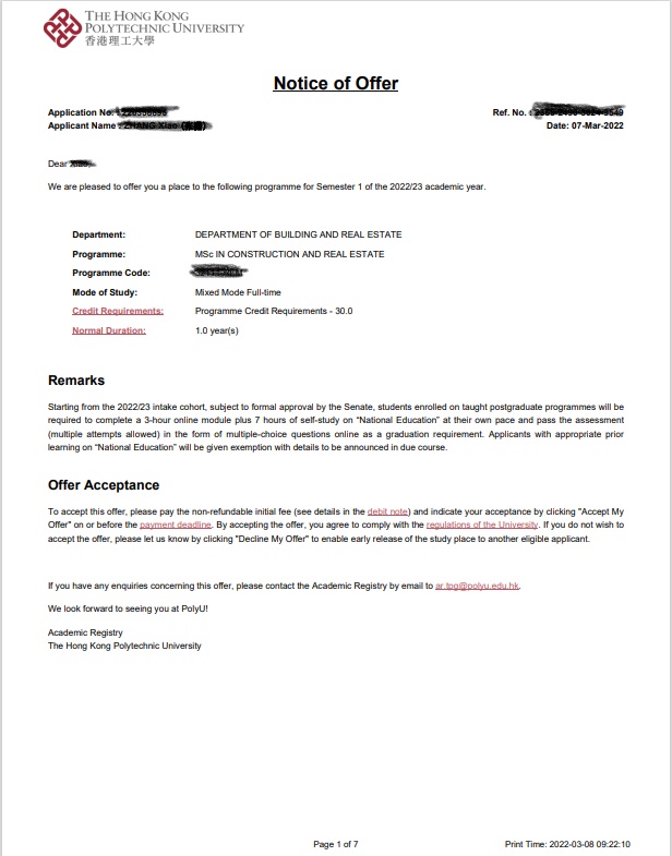 录取国家/地区:中国香港