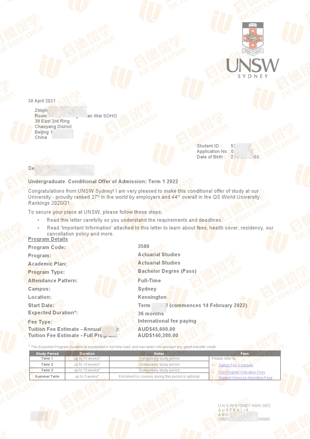 录取院校:新南威尔士大学