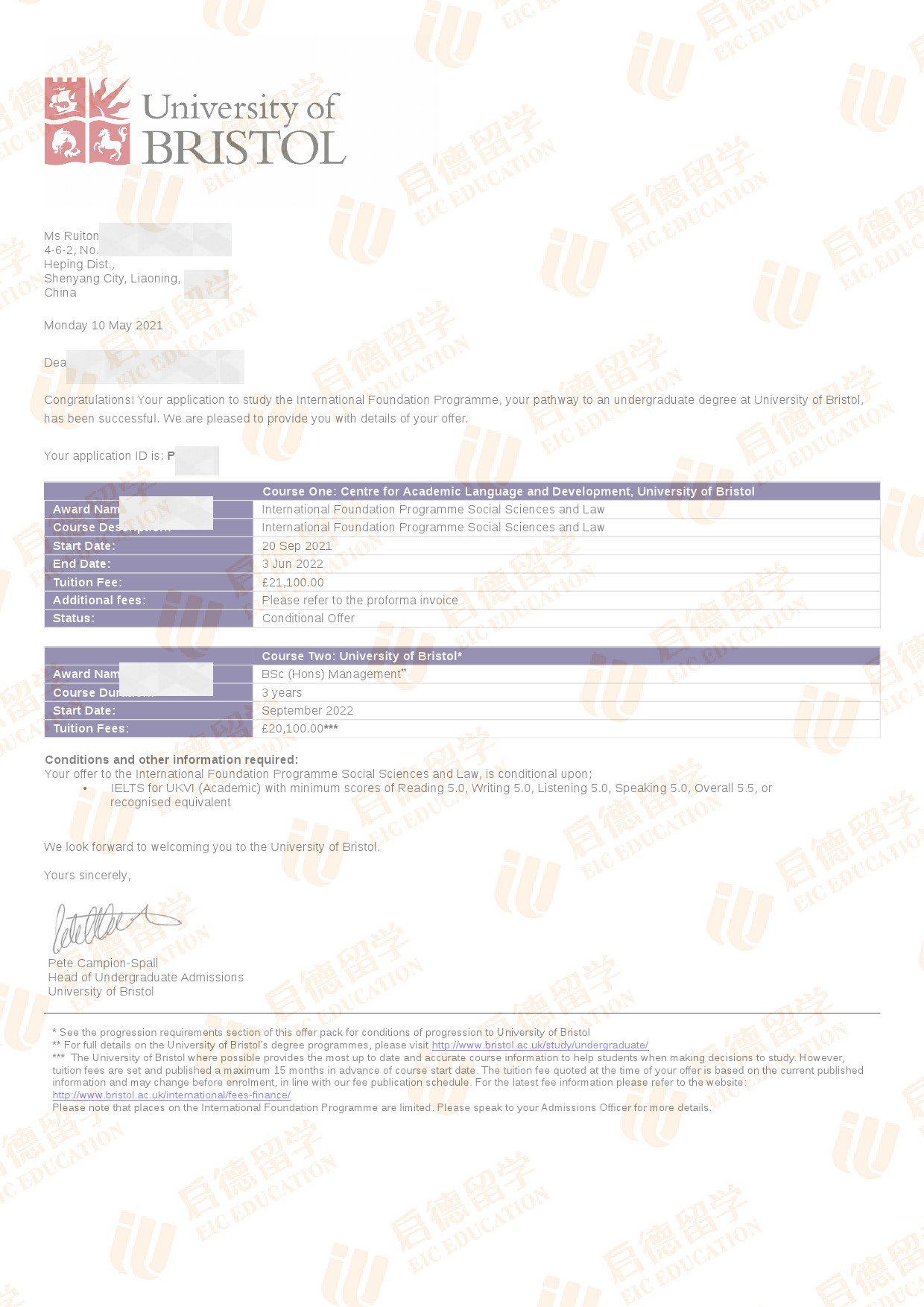 录取院校:布里斯托大学