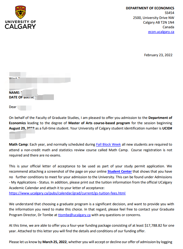 录取院校:卡尔加里大学