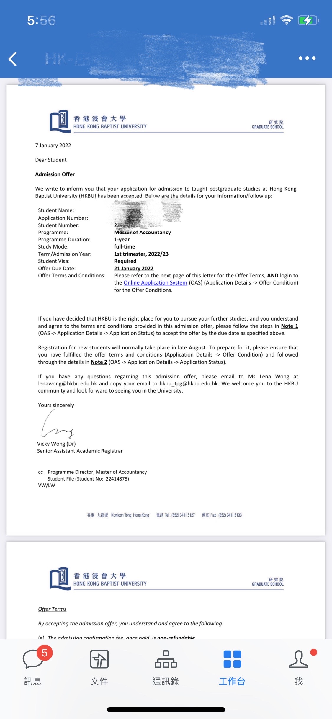 录取国家/地区:中国香港