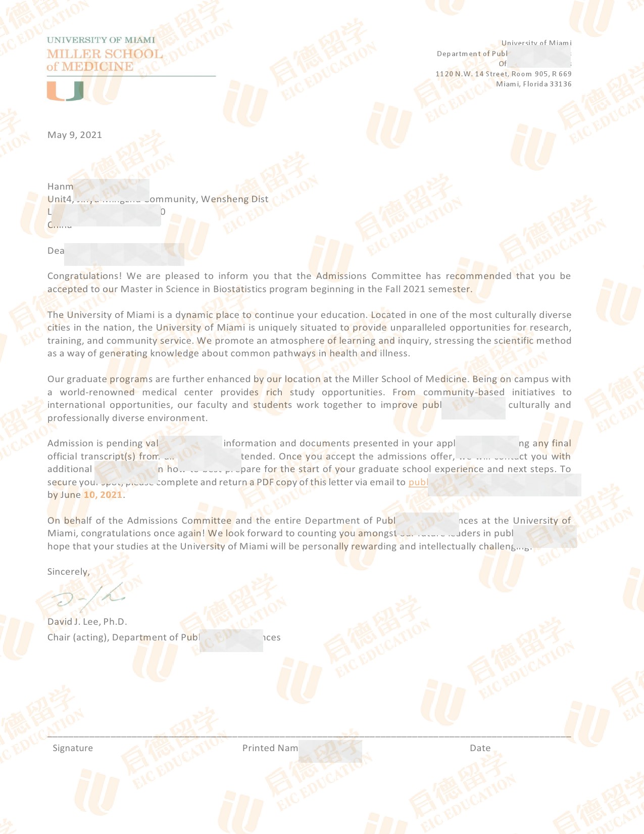 录取院校:迈阿密大学