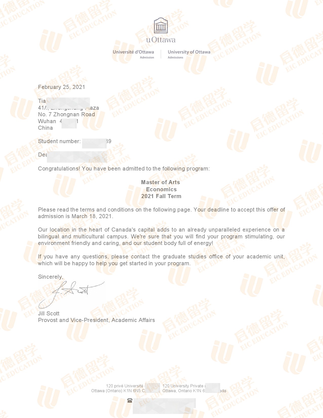 录取院校:渥太华大学