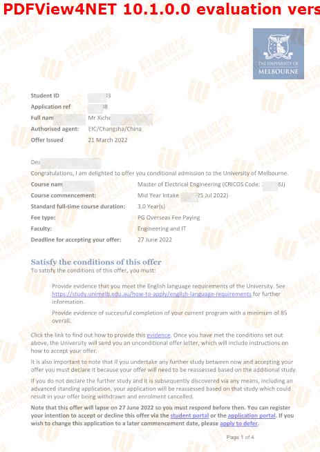 录取院校:墨尔本大学