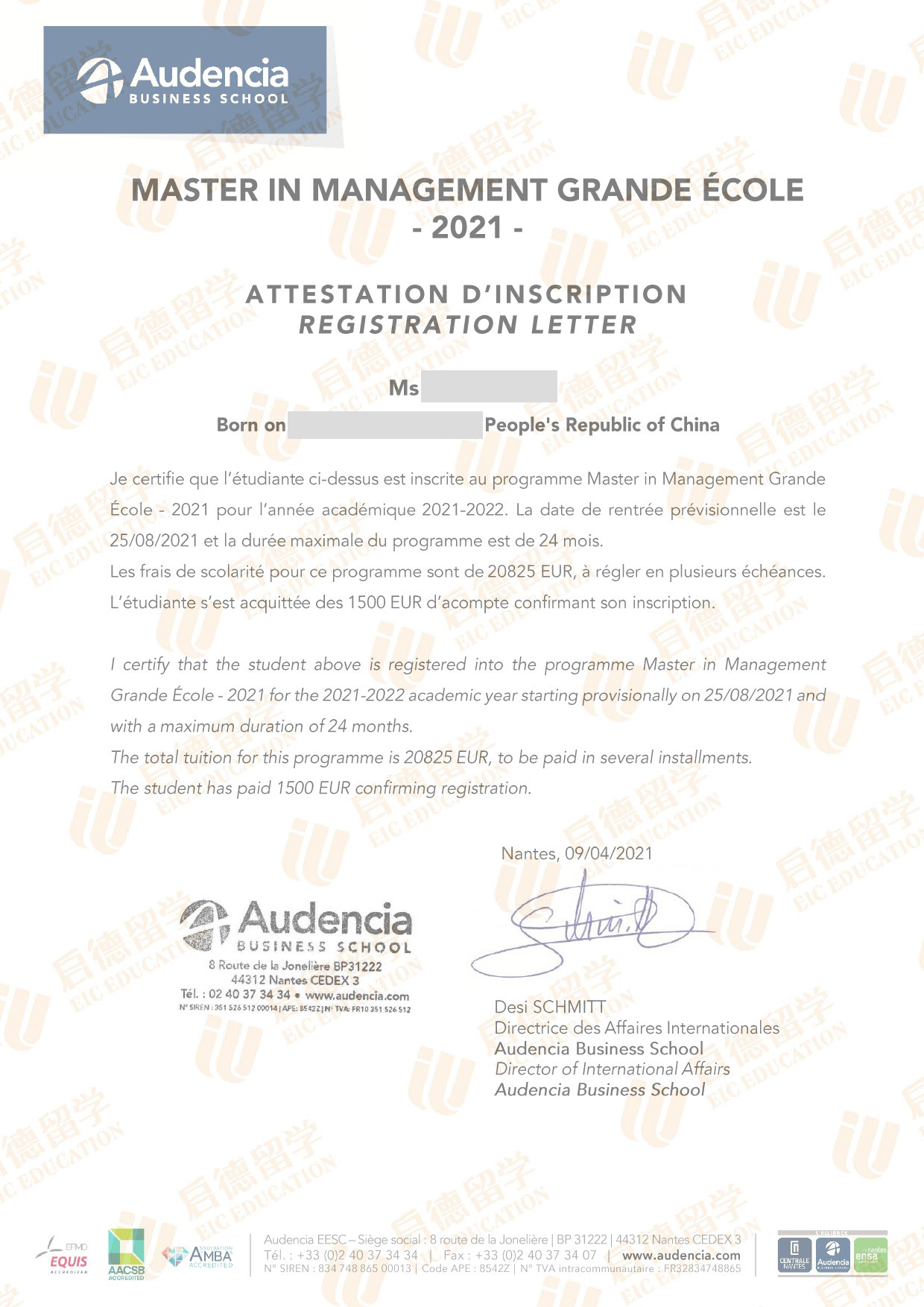 录取院校:南特商学院