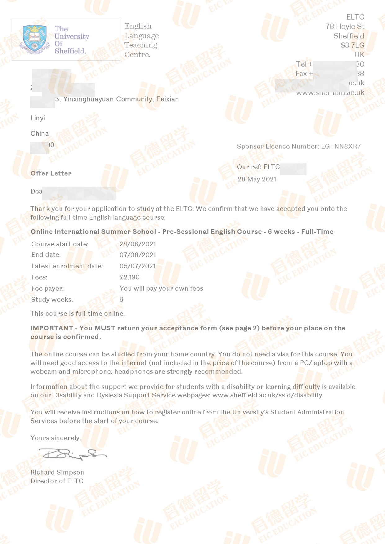 录取院校:谢菲尔德大学