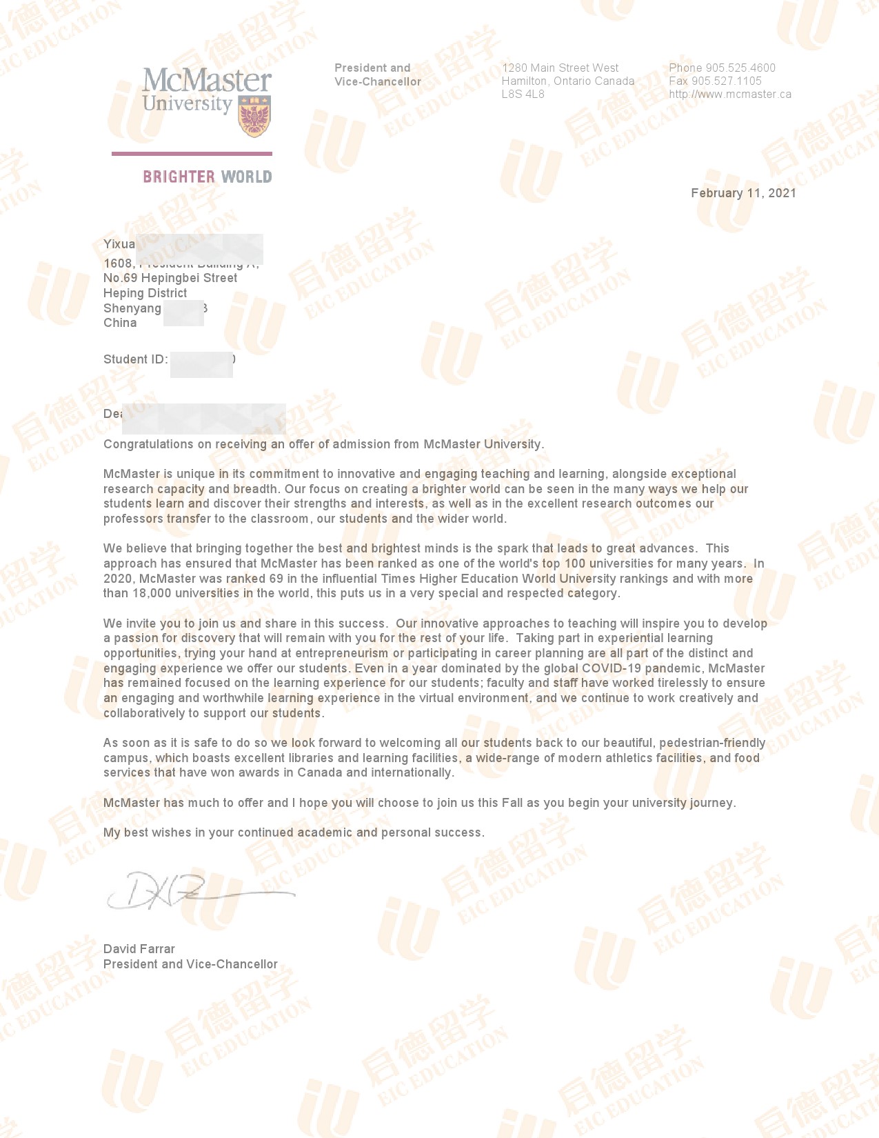录取院校:麦克马斯特大学