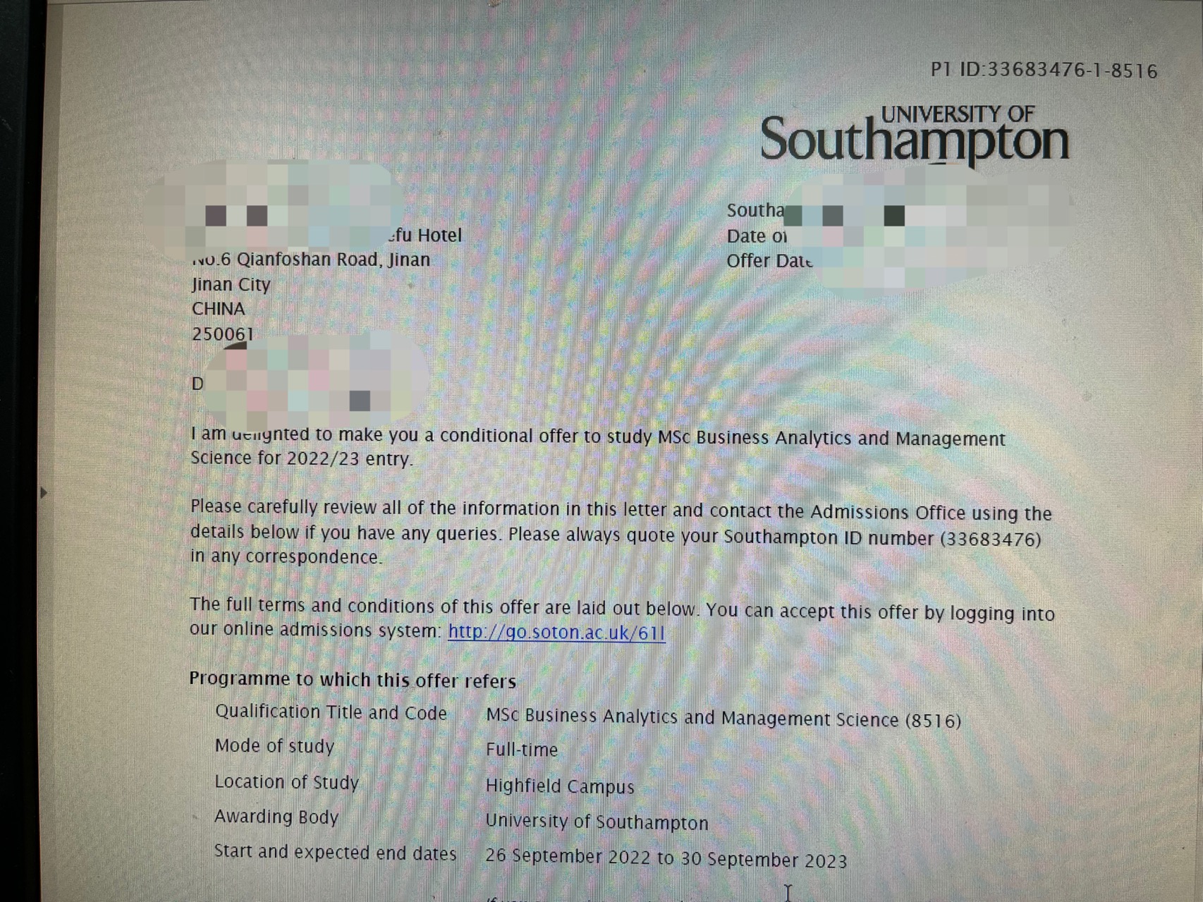 录取专业:MSc Business Analytics and Management Sciences