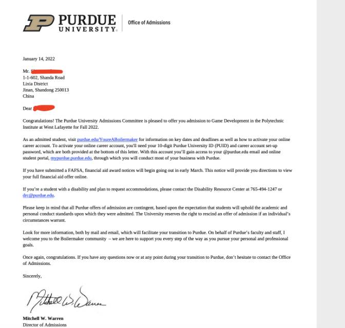 录取院校:普渡大学西拉法叶分校