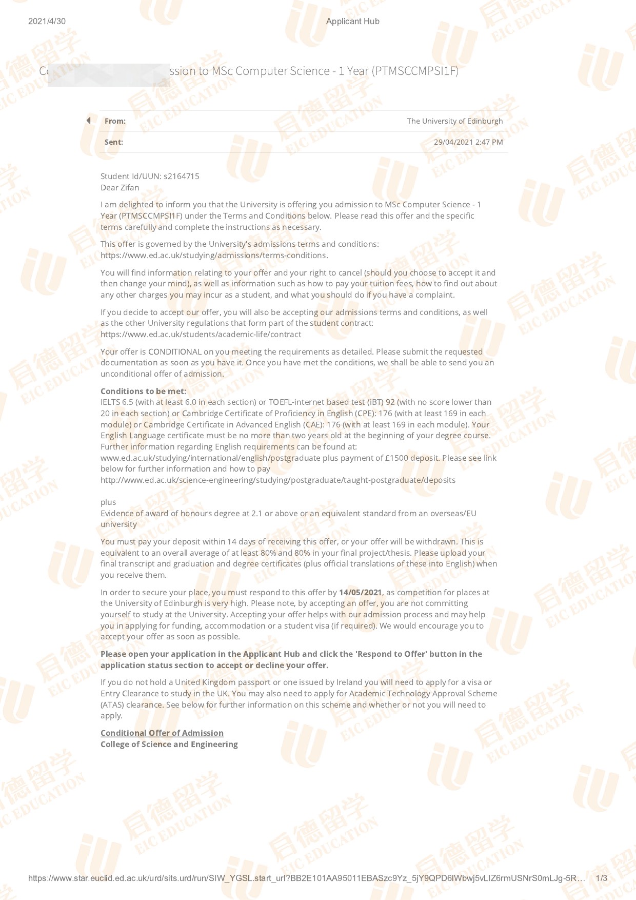 录取院校:爱丁堡大学