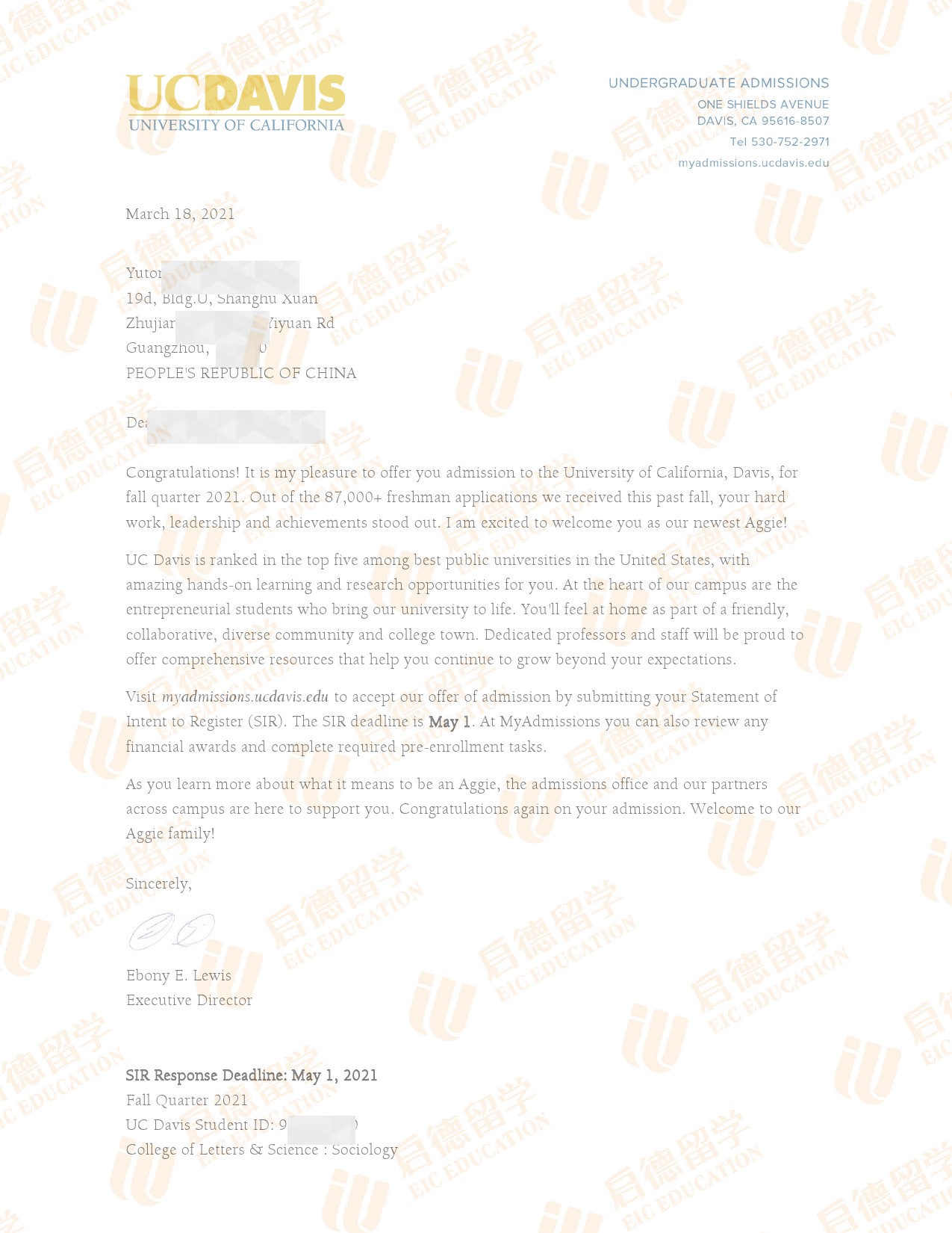 录取院校:加州大学戴维斯分校