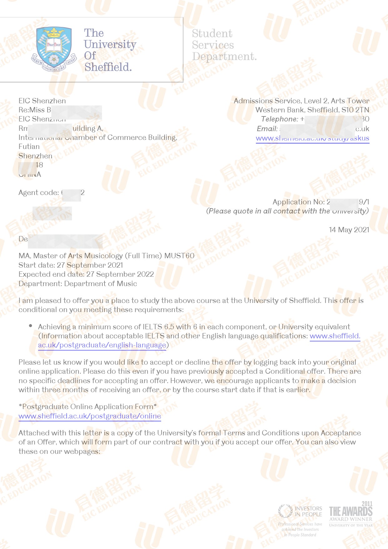 录取院校:谢菲尔德大学