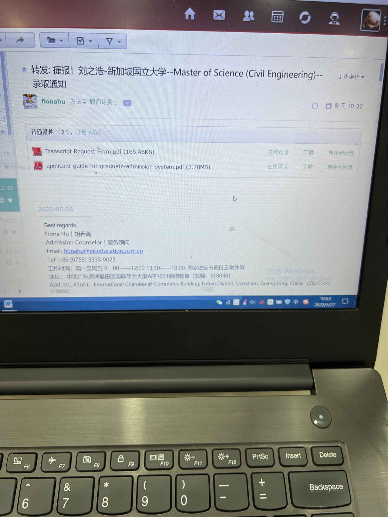 录取国家/地区:新加坡