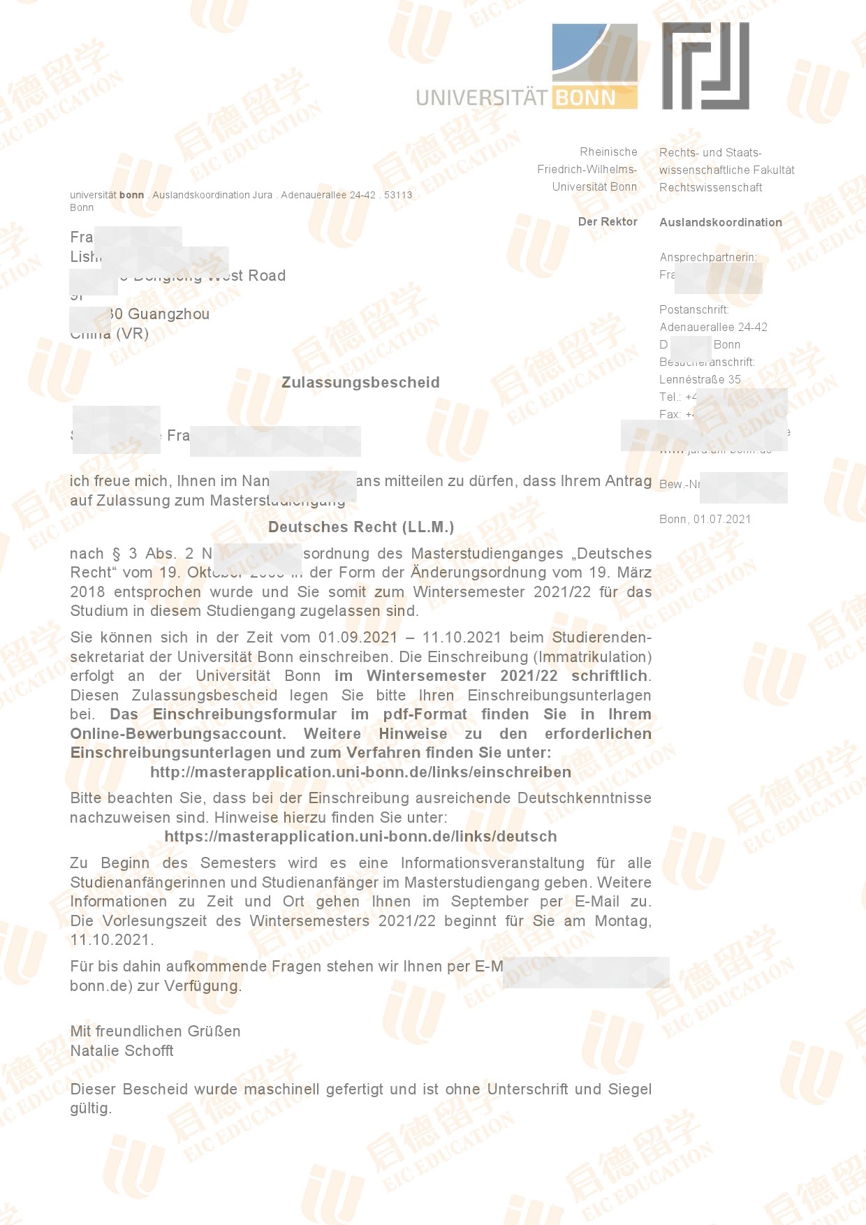 录取专业:Master-Deutsches Recht
