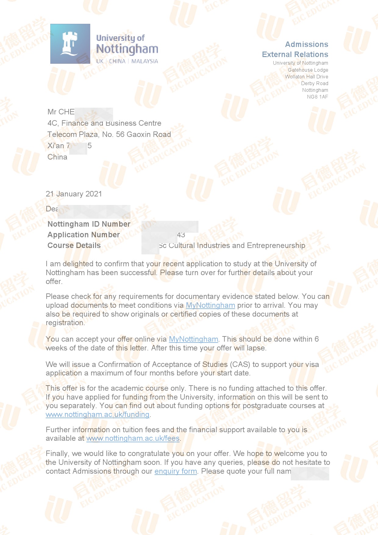 录取院校:诺丁汉大学
