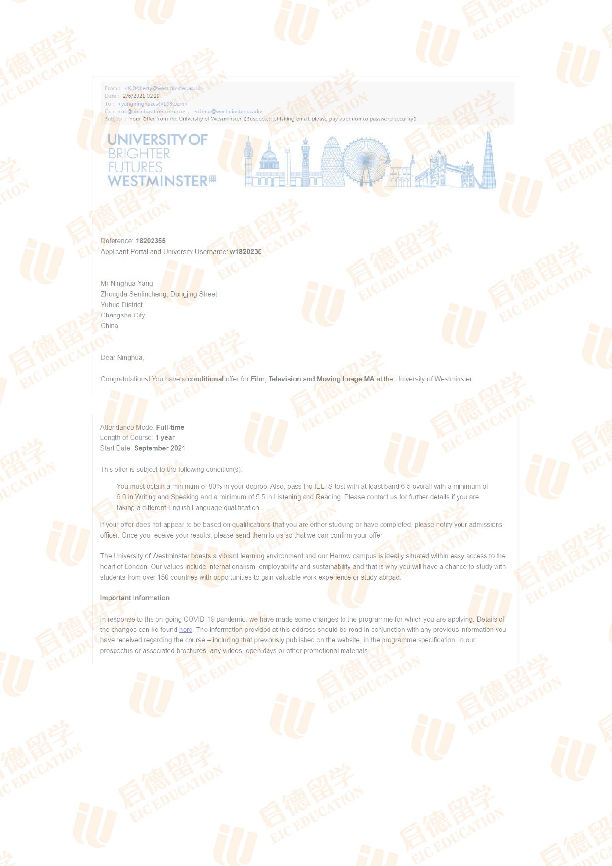 录取院校:威斯敏斯特大学