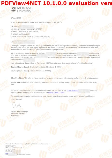 录取院校:蒙纳士大学