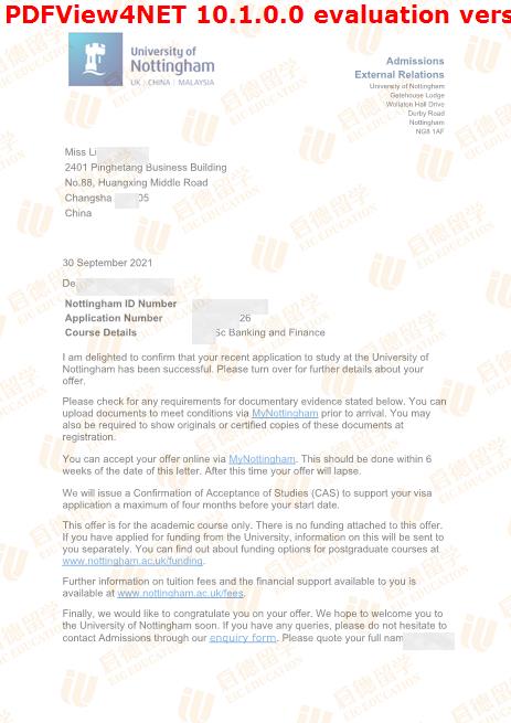 录取院校:诺丁汉大学