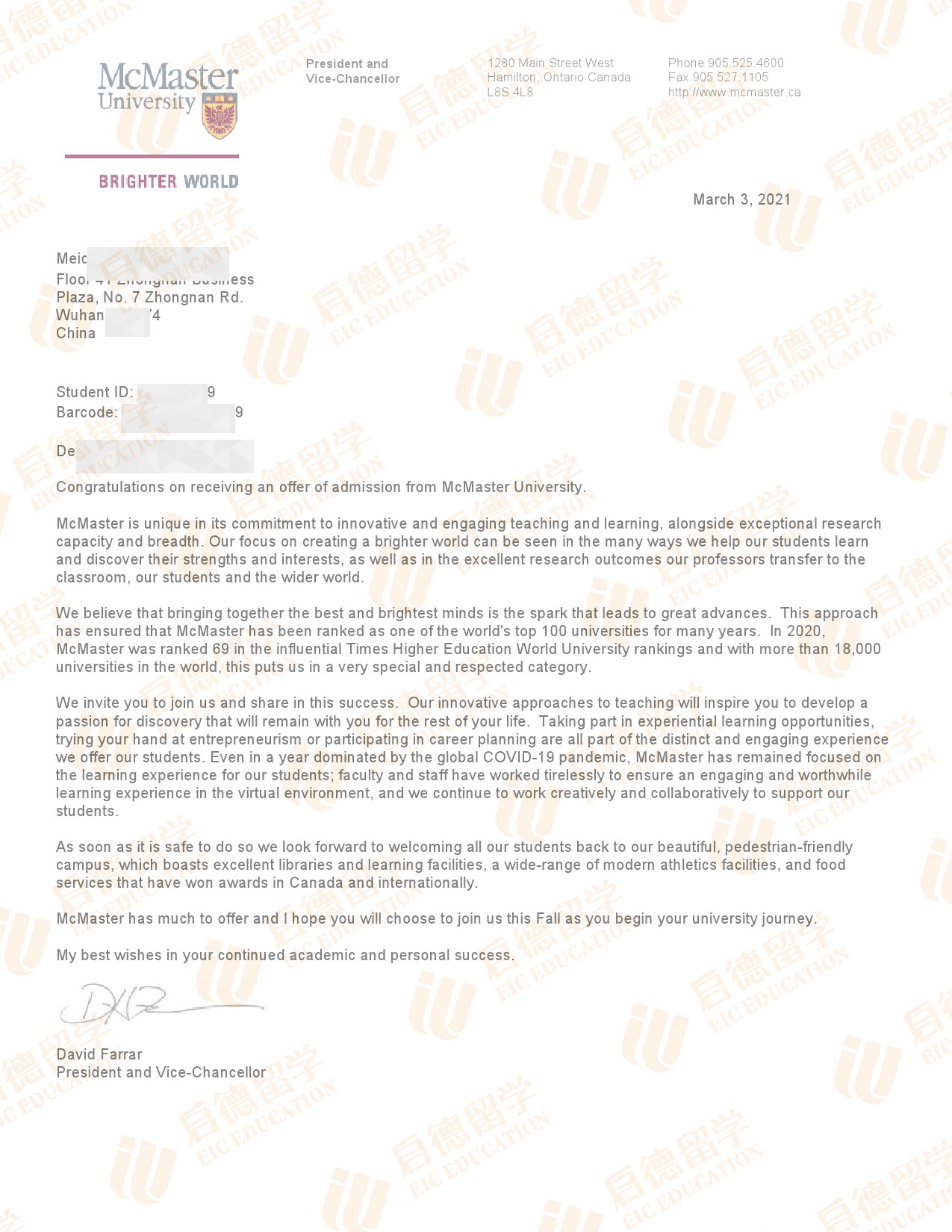 录取院校:麦克马斯特大学