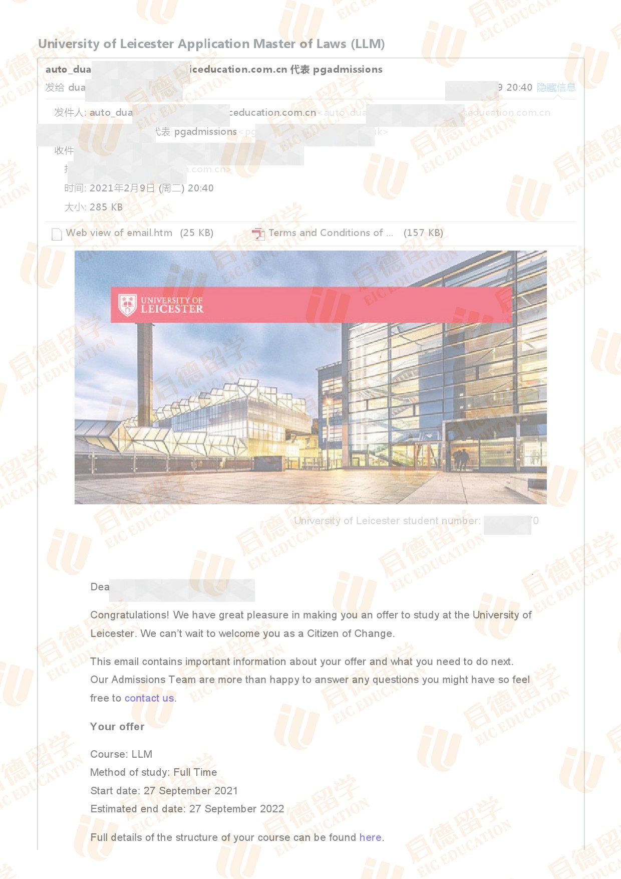 录取院校:莱斯特大学
