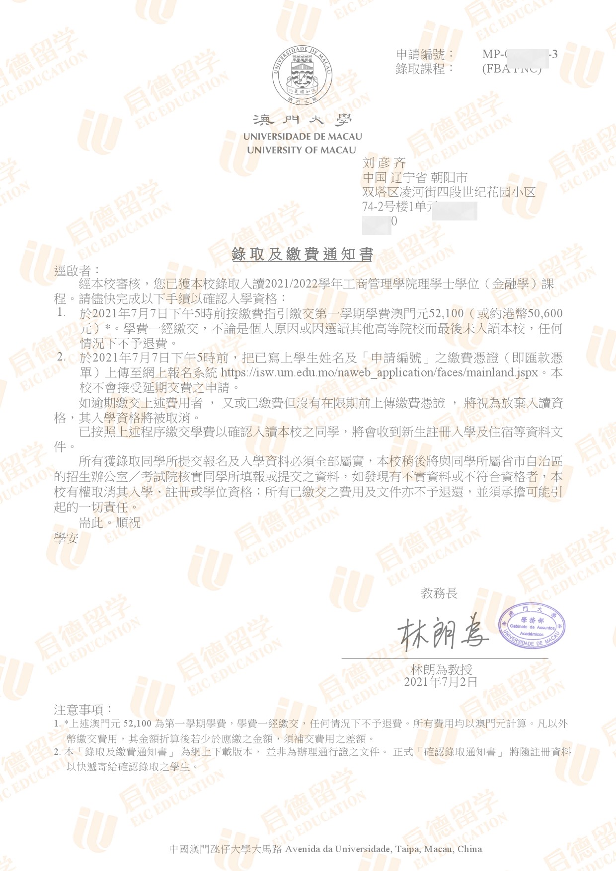 录取国家/地区:中国澳门