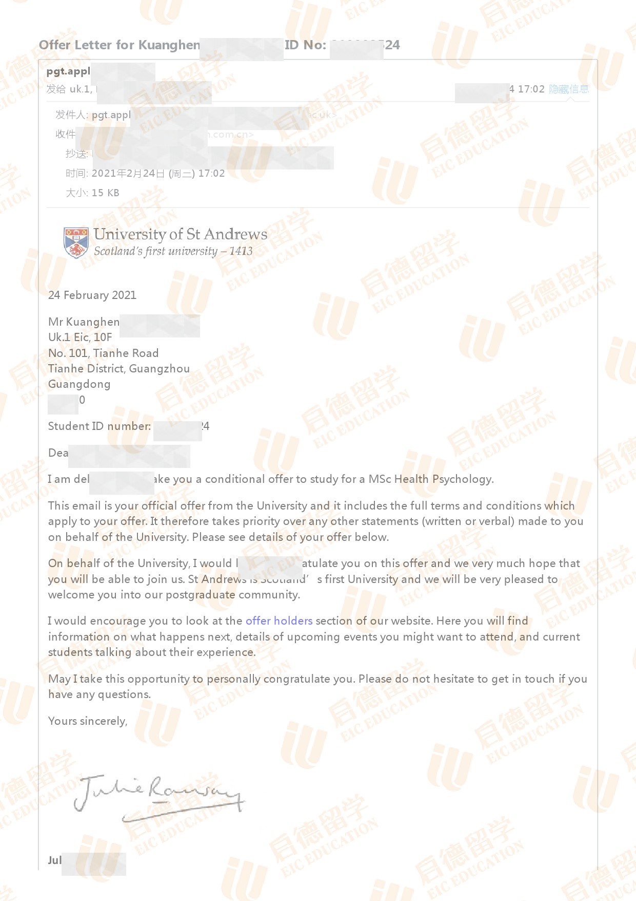 录取院校:圣安德鲁斯大学