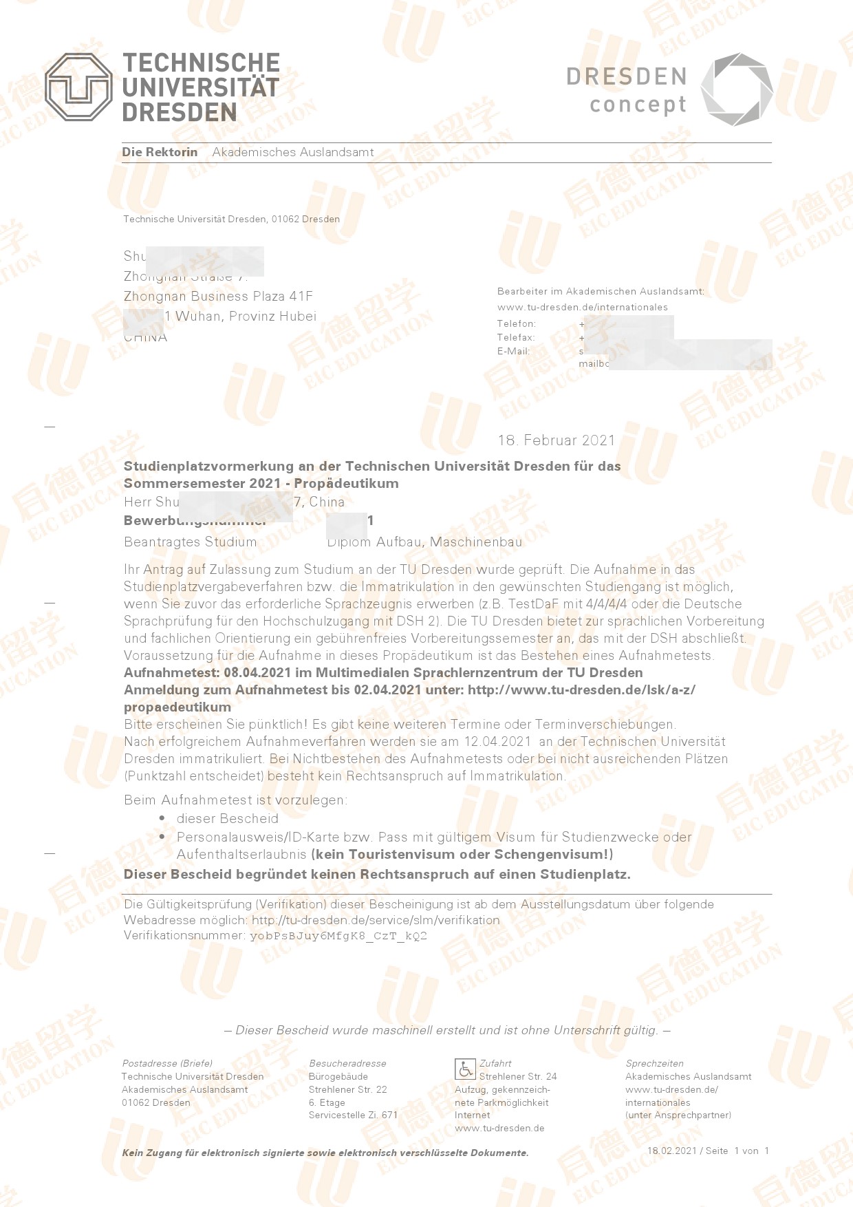 录取院校:德累斯顿工业大学