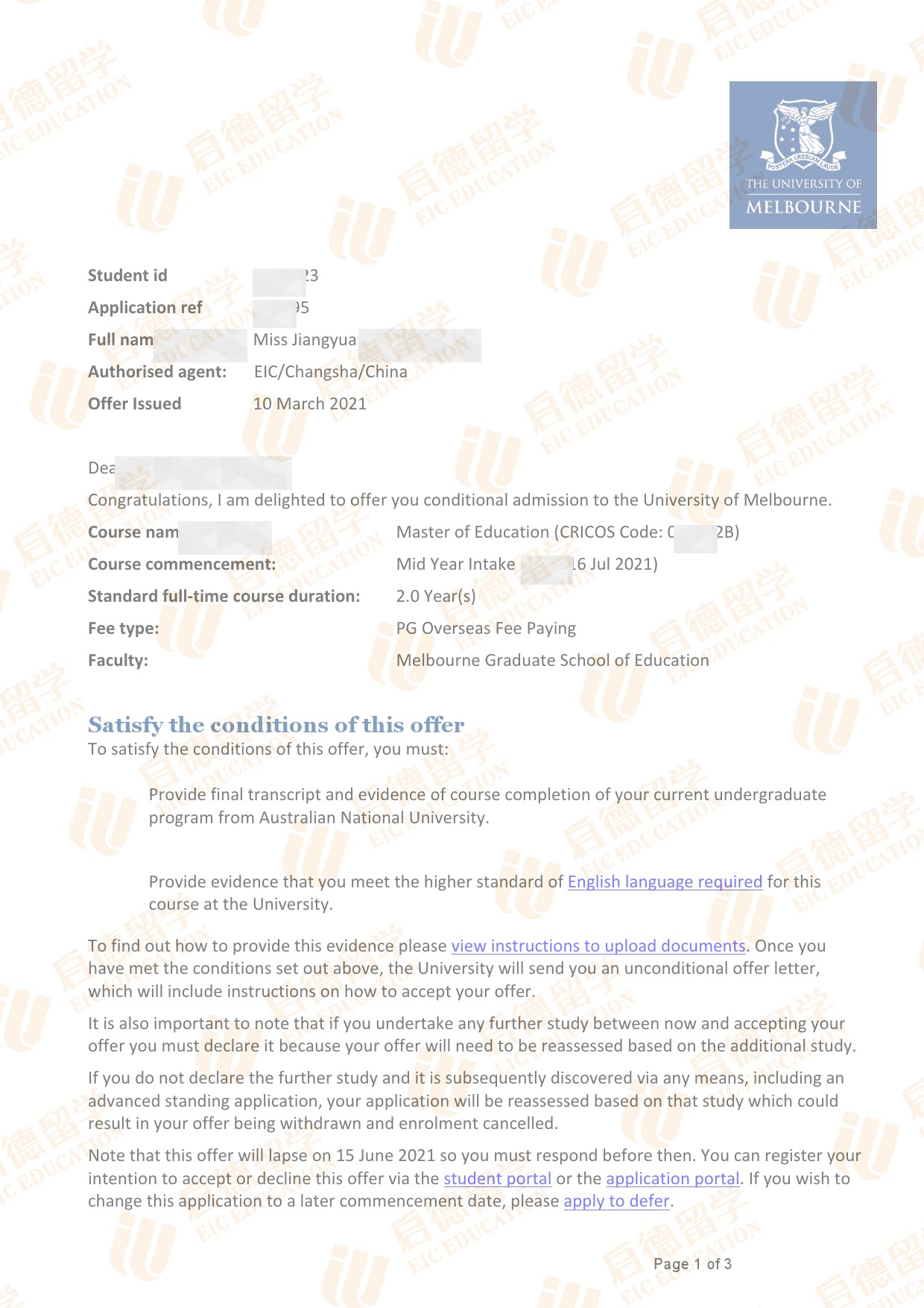 录取院校:墨尔本大学