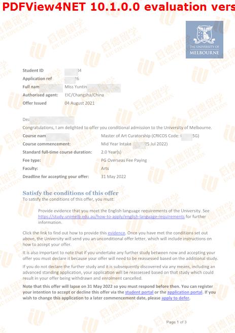 录取院校:墨尔本大学