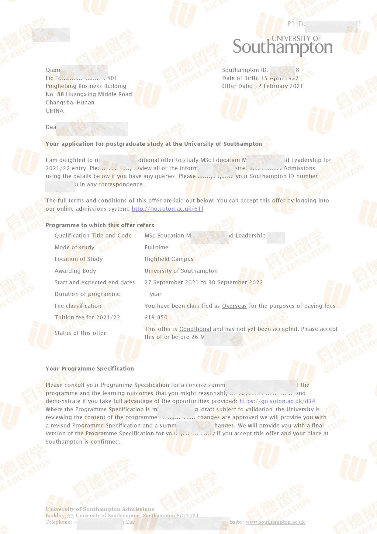 录取院校:南安普顿大学