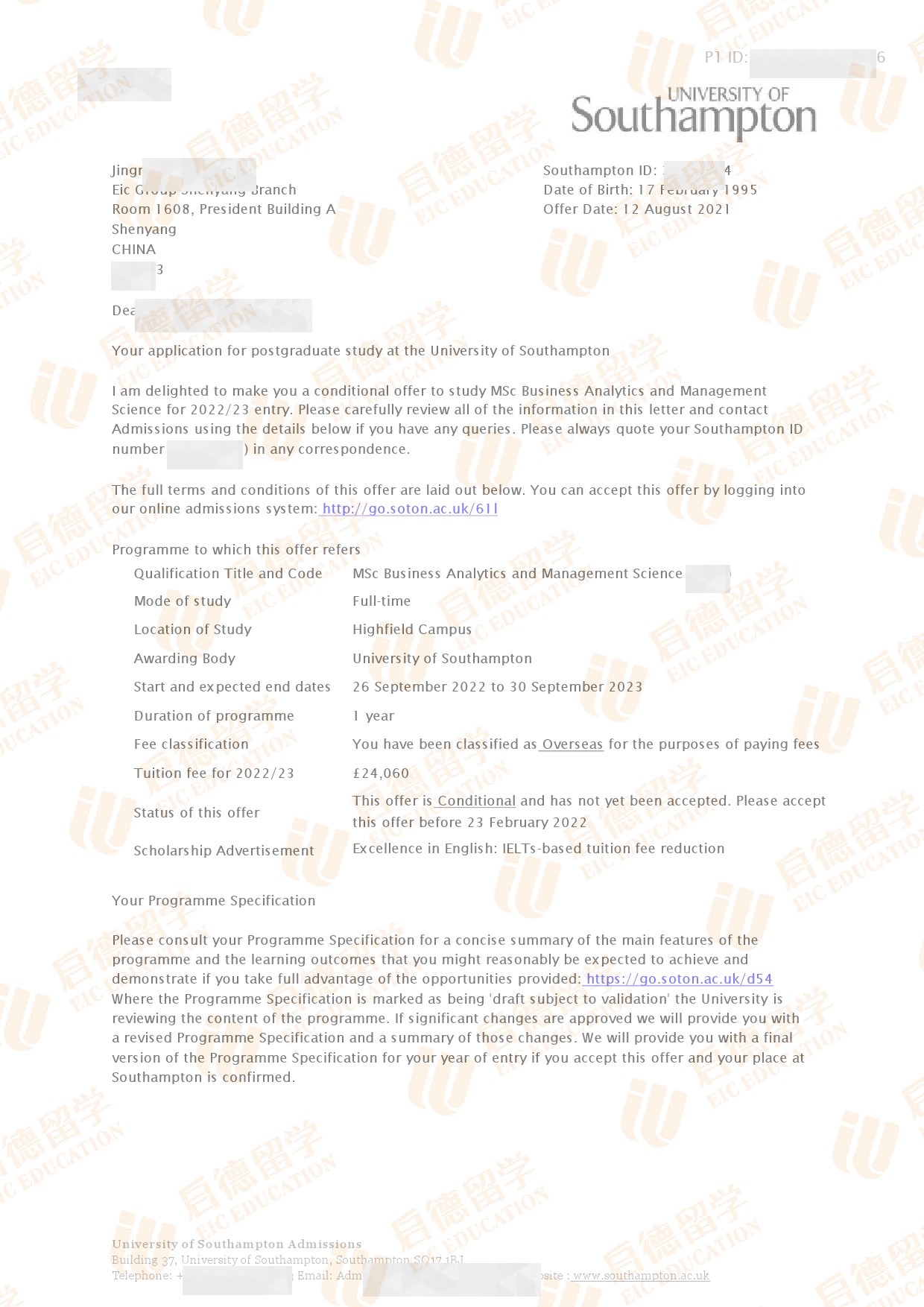 录取院校:南安普顿大学