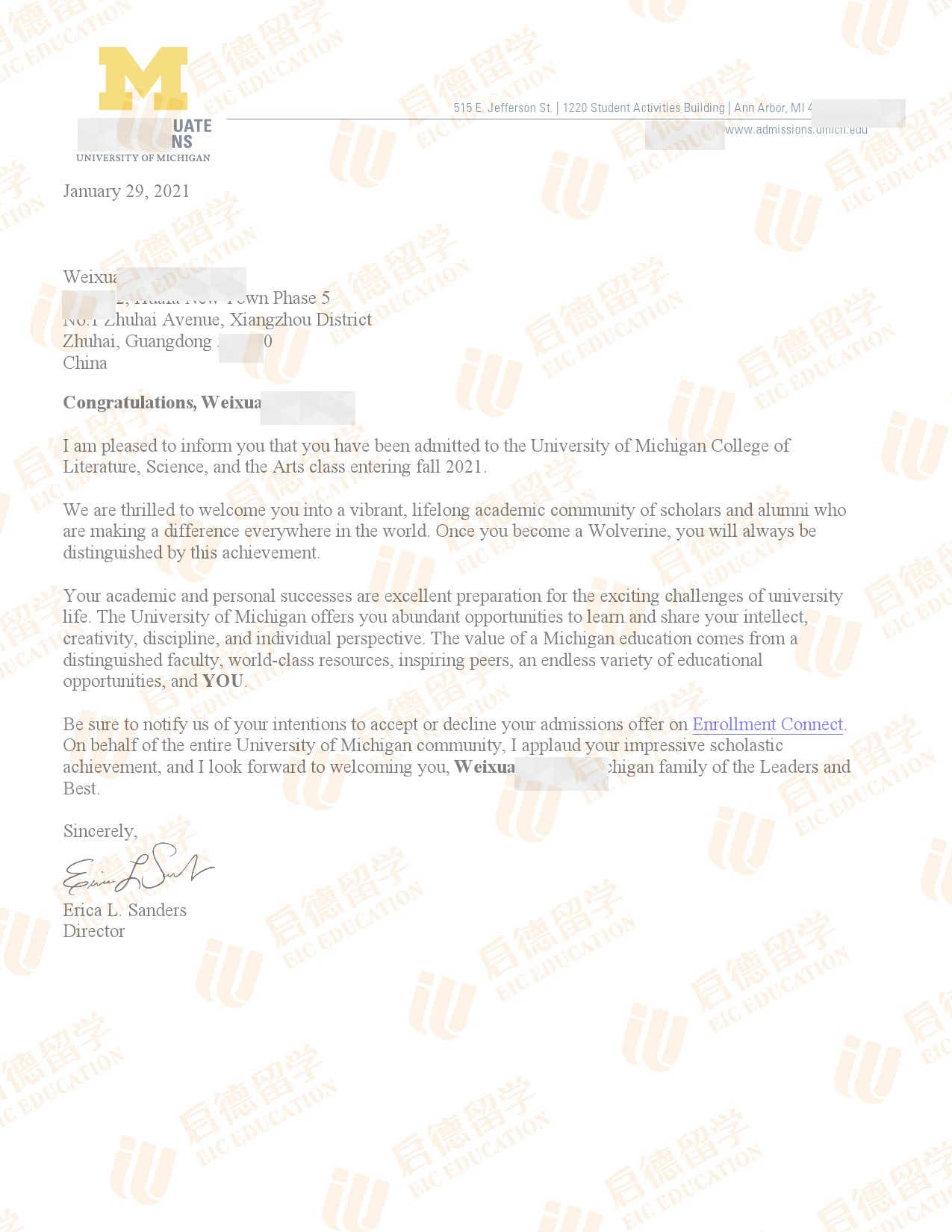 录取院校:密歇根大学安娜堡分校