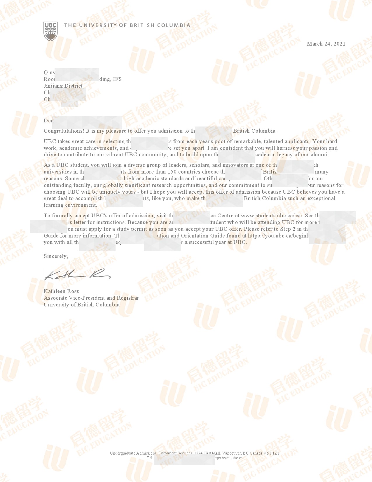 录取院校:英属哥伦比亚大学