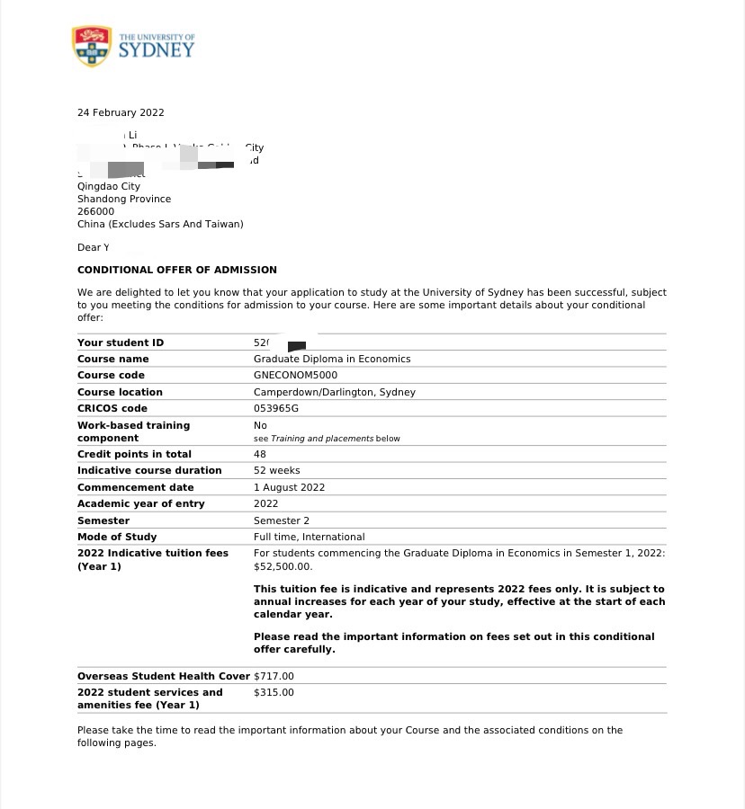 录取院校:悉尼大学