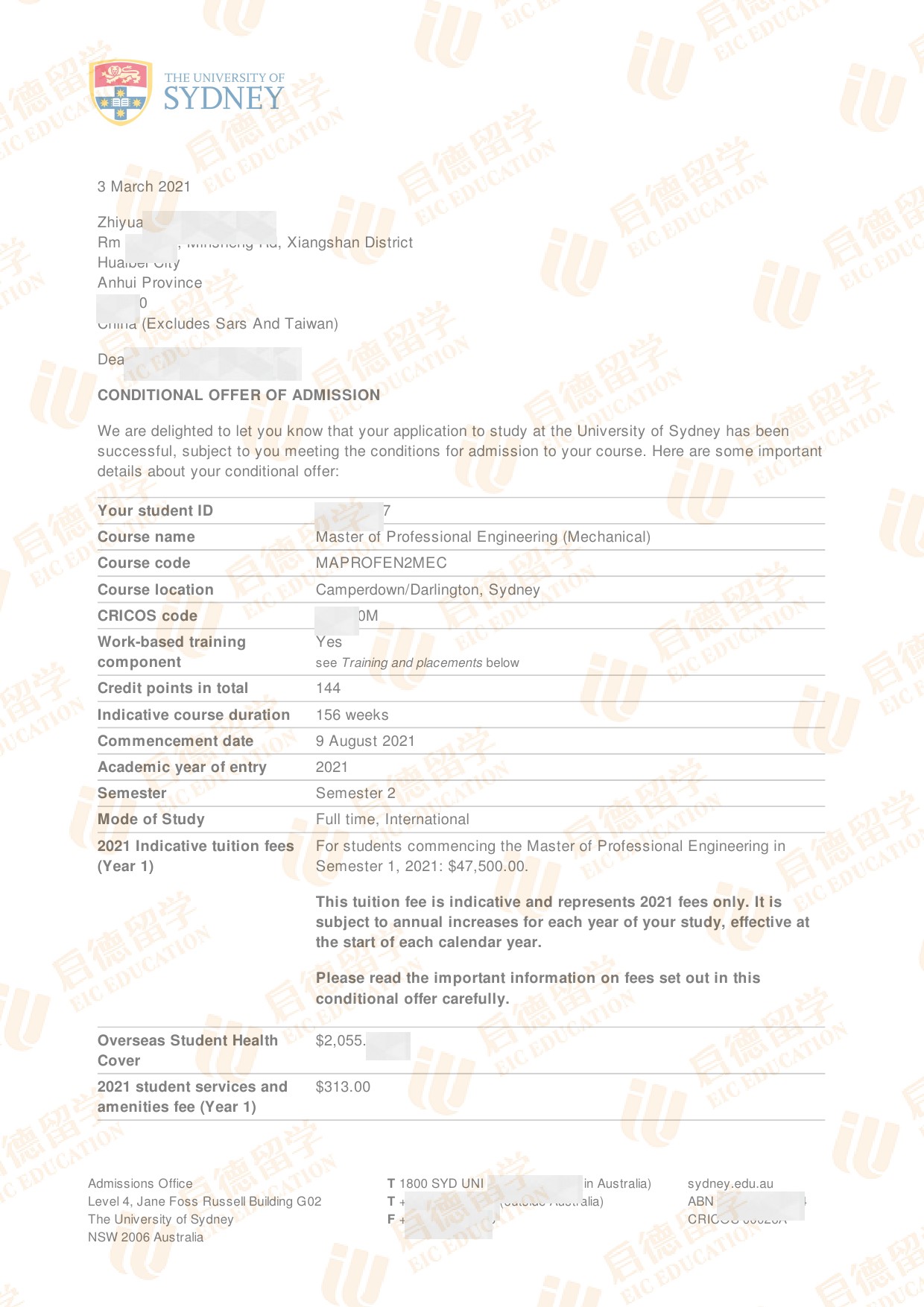 录取院校:悉尼大学
