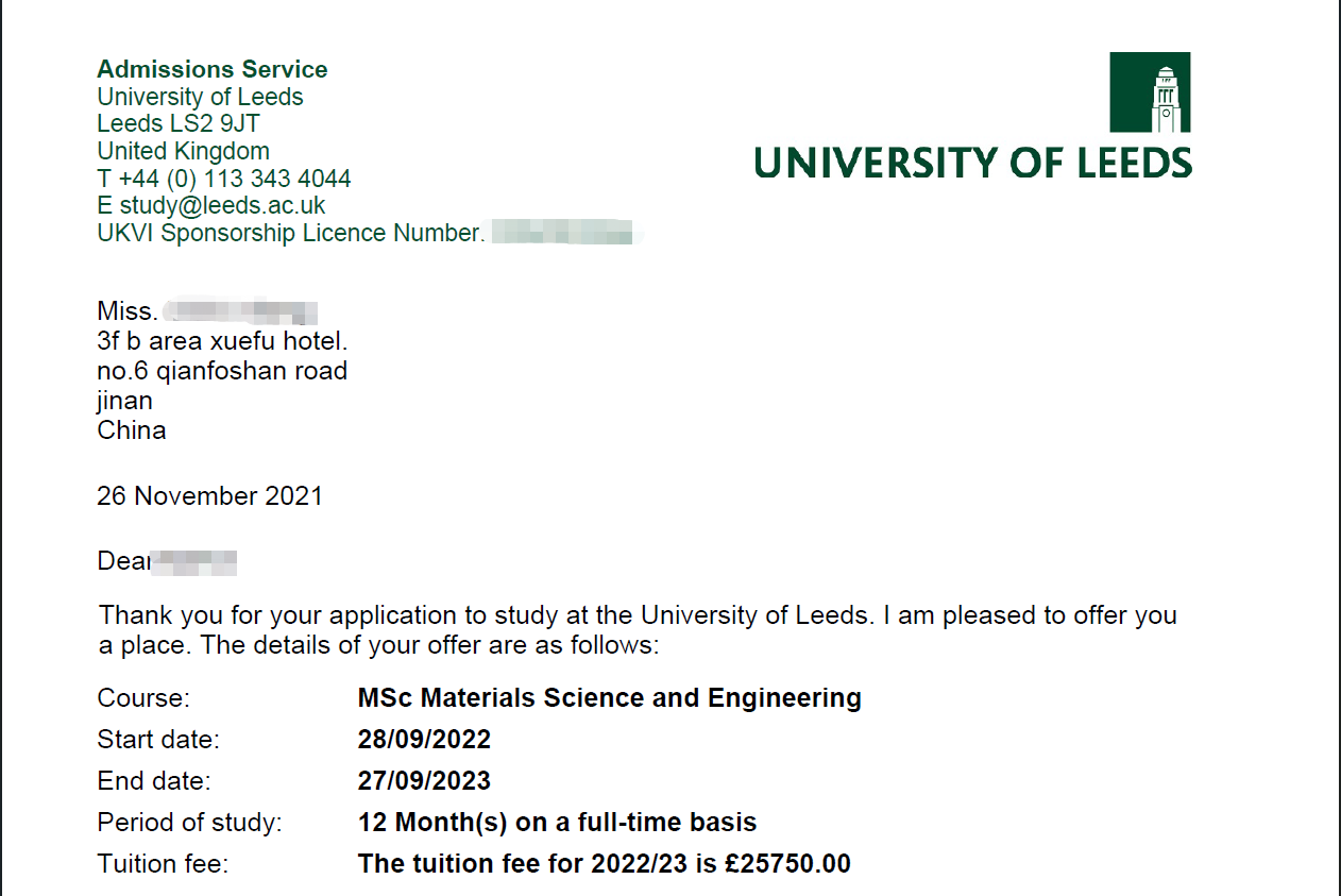 录取院校:利兹大学