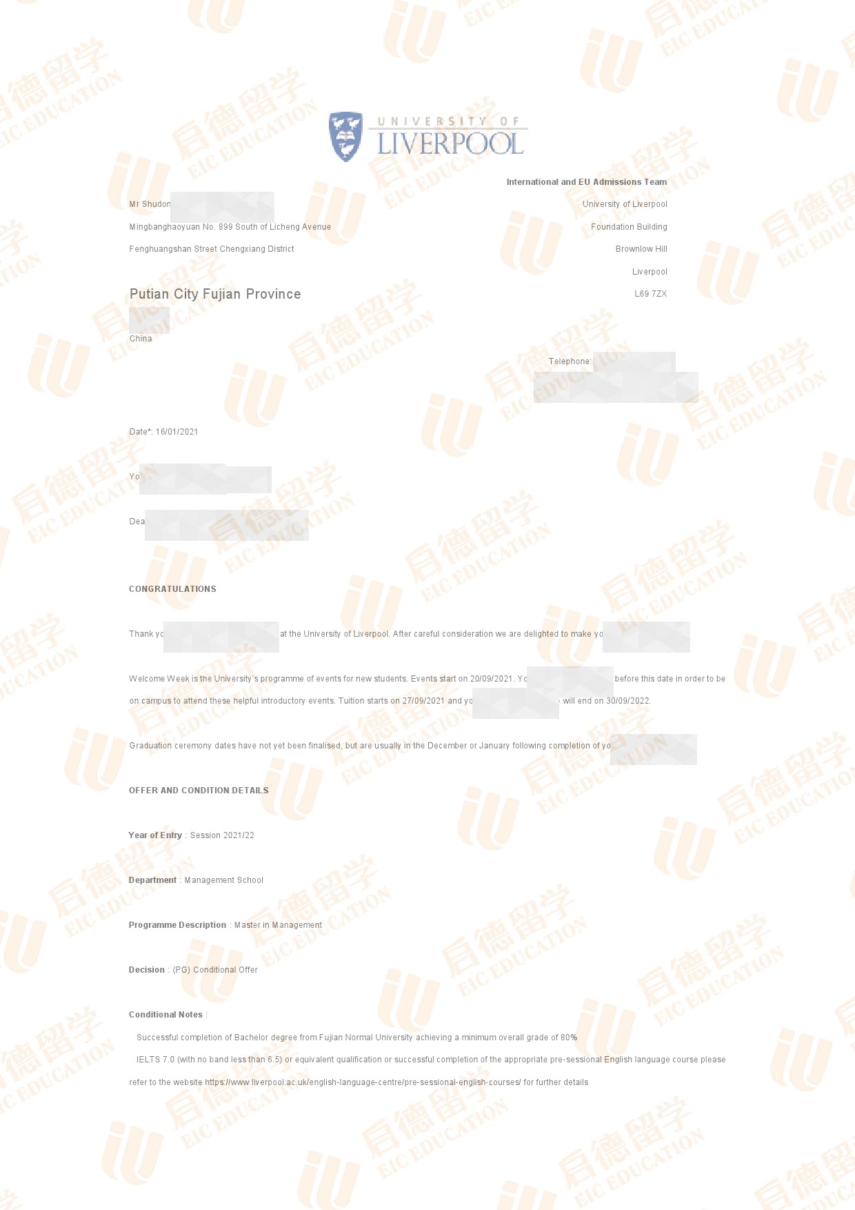 录取院校:利物浦大学