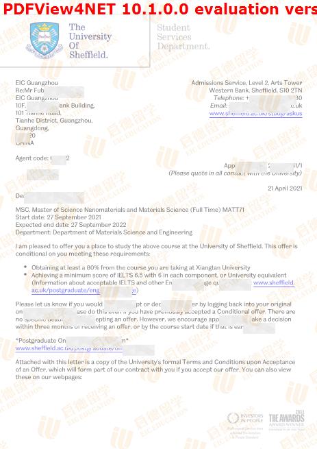 录取院校:谢菲尔德大学