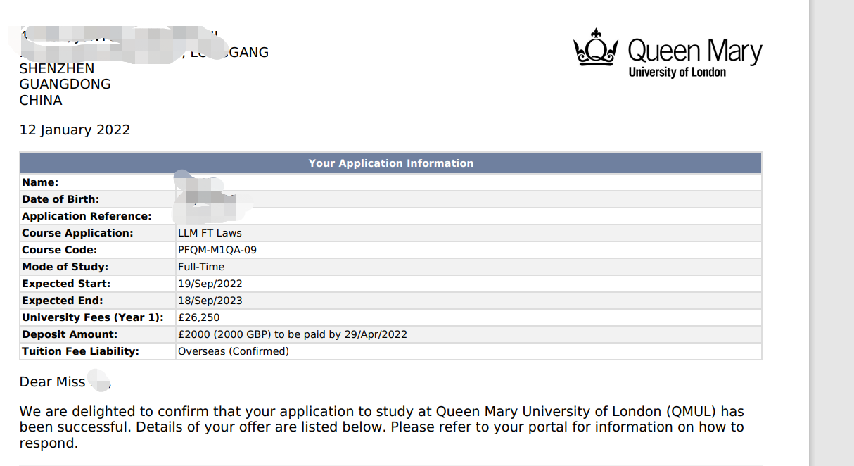 录取院校:伦敦玛丽女王大学