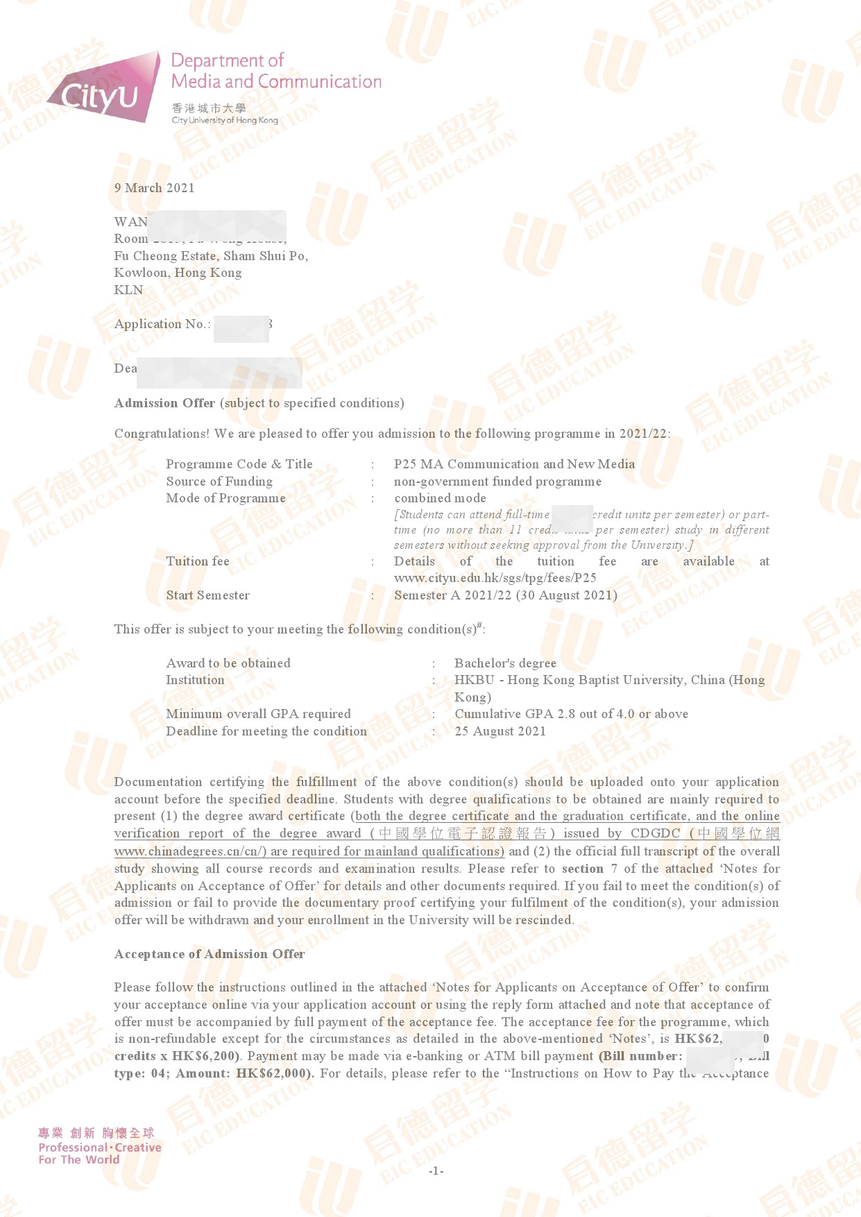 录取专业:MA Communication and New Media