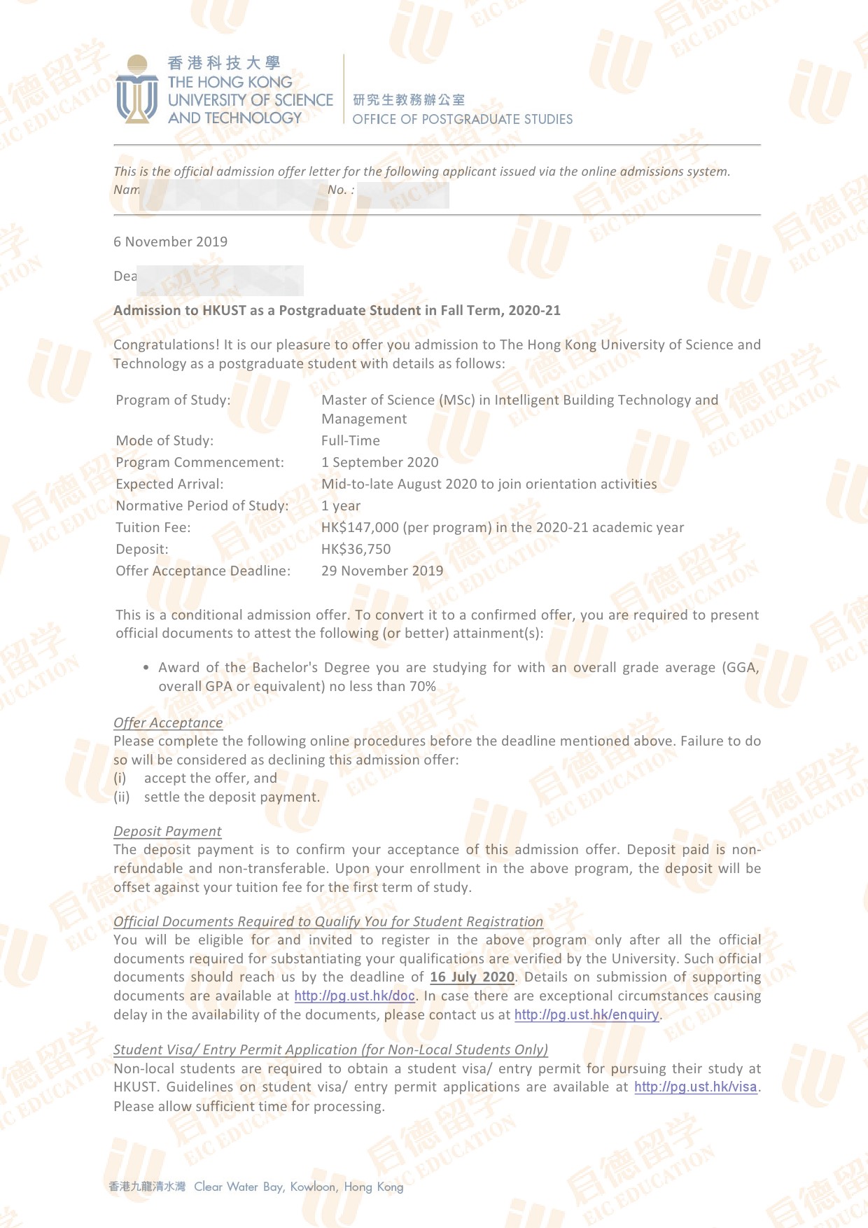 录取院校:香港科技大学