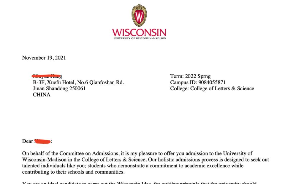 录取院校:威斯康星大学麦迪逊分校