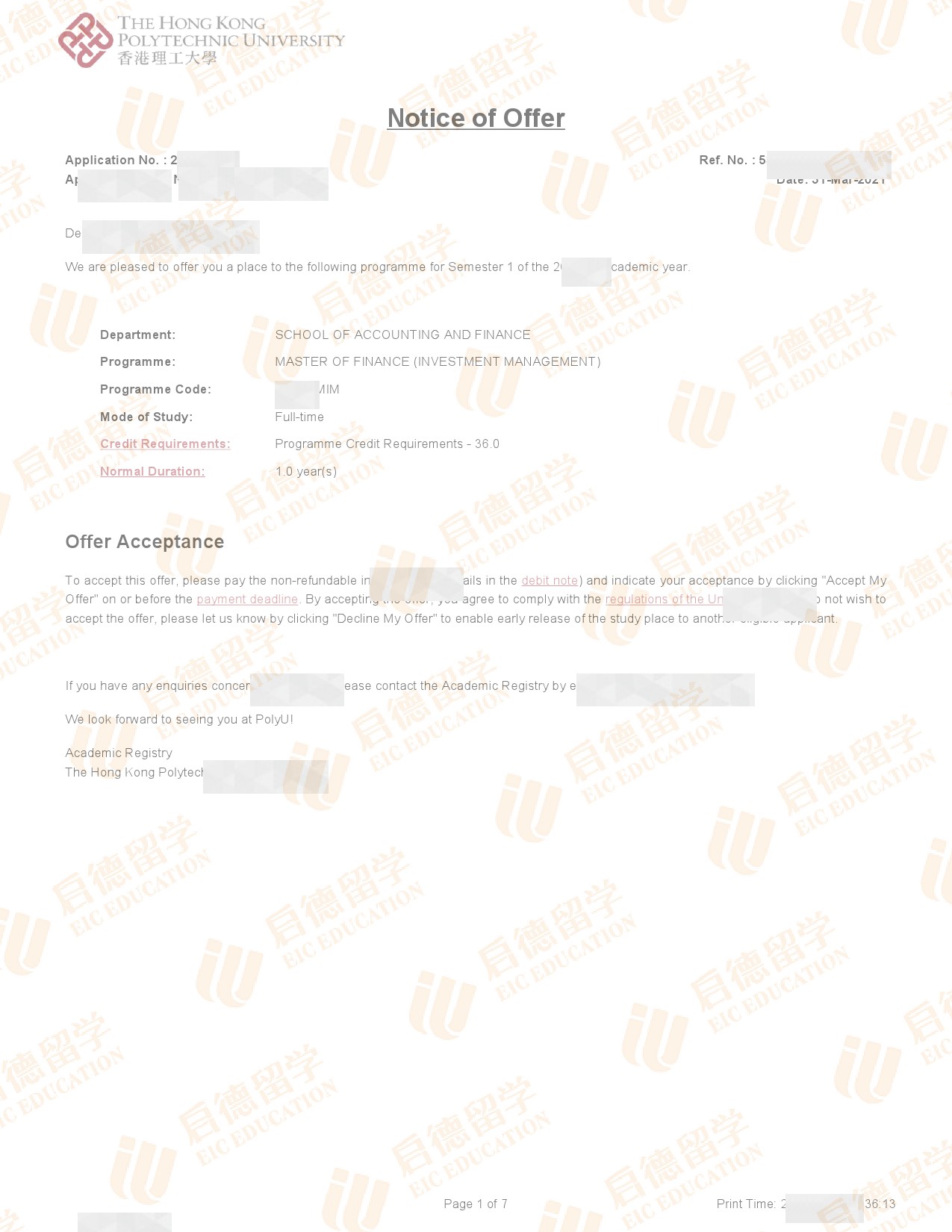 录取专业:Master of Finance (Investment Management)