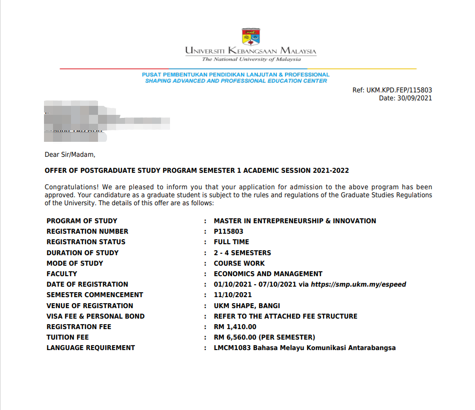 录取院校:马来西亚国立大学