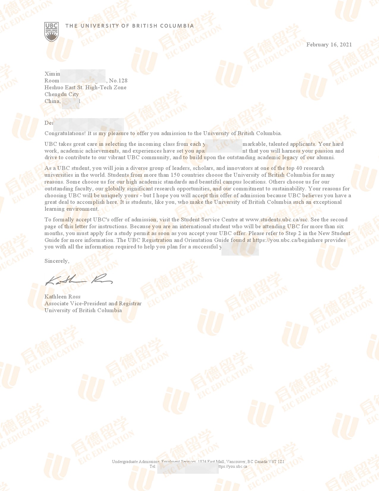 录取院校:英属哥伦比亚大学