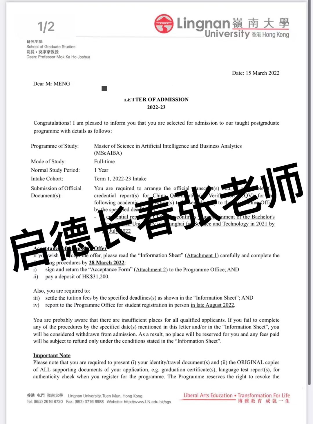 录取专业:MSc in Artificial Intelligence and Business Analytics