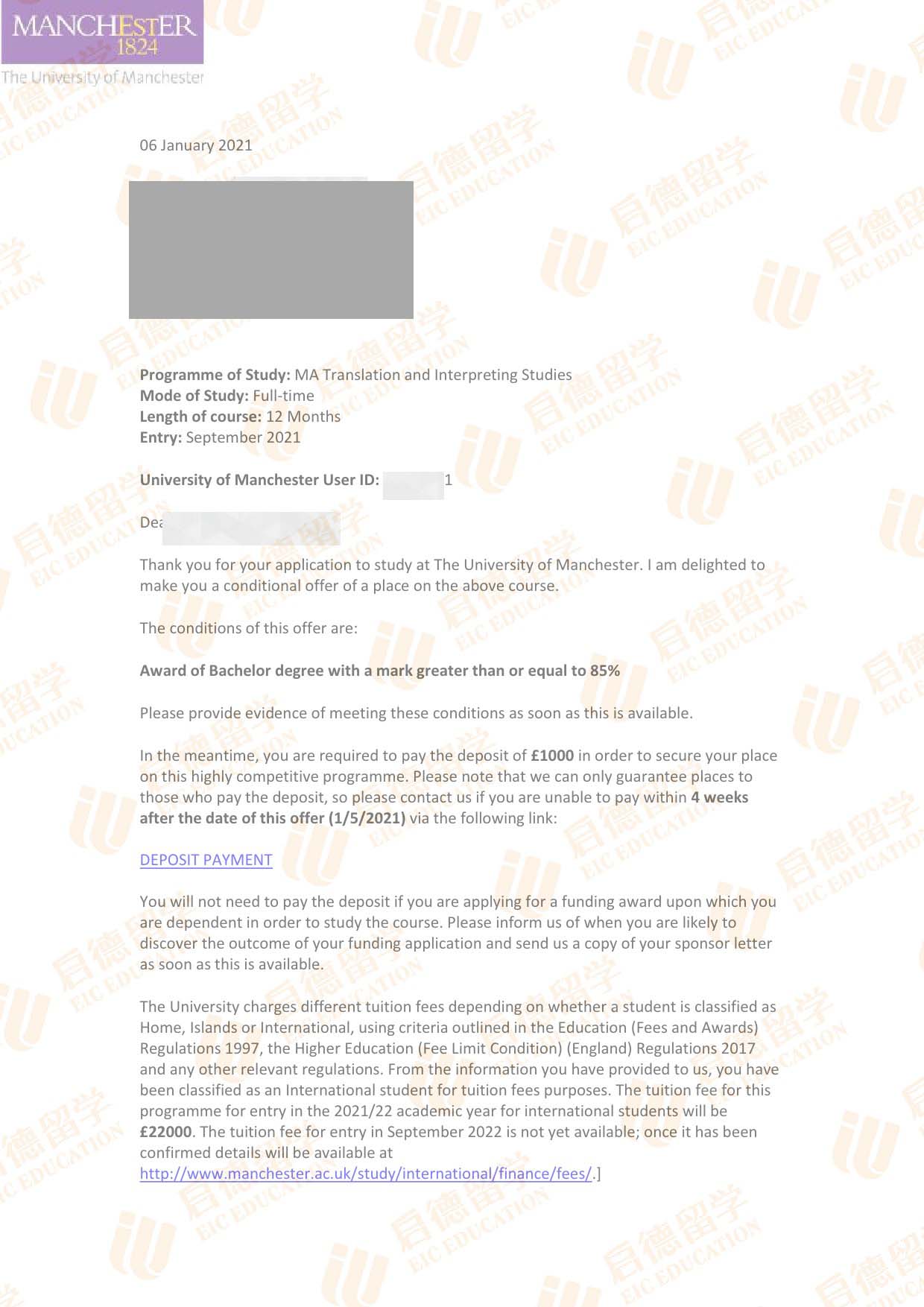 录取院校:曼彻斯特大学